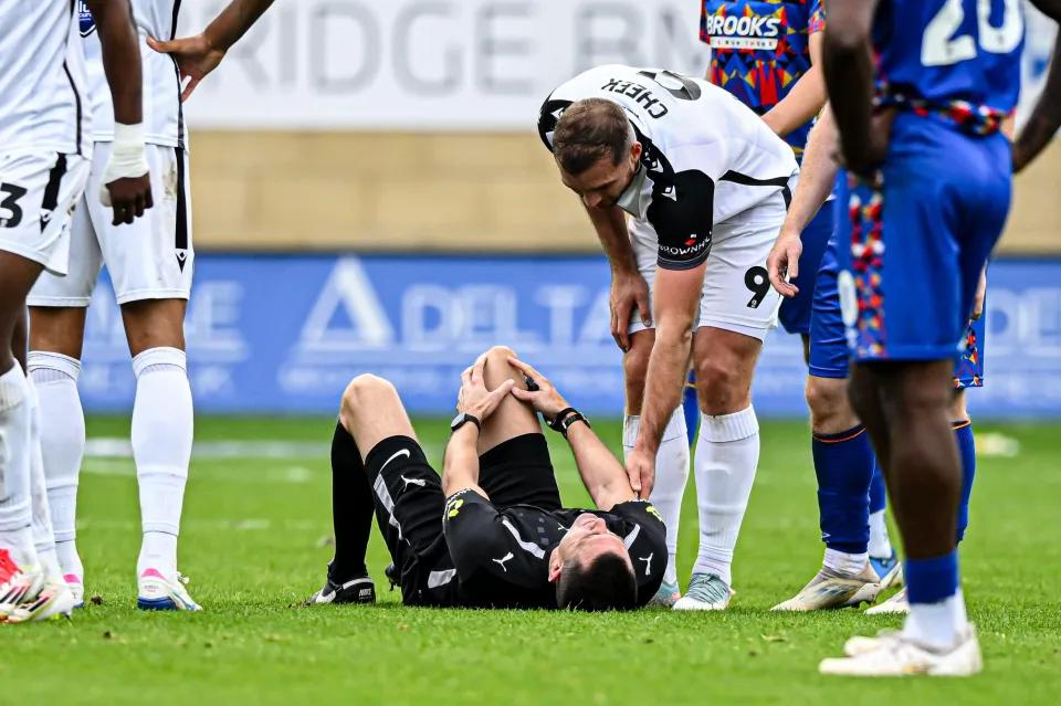 据《太阳报》报道,英乙联赛中出现了极为罕见的一幕。布罗姆利与剑桥联的比赛,因主裁判德克兰-伯恩在场上意外受伤倒地而被迫中断,现场广播员甚至不得不呼吁有裁判资质的观众上场执法。这一幕使得布罗姆利成为本赛季第三次遭遇此类事件的球队,情况颇为离奇。比赛在剑桥联的主场进行,当时比分为2-1,主裁判伯恩在场上突然捂住膝盖倒地不起。由于他无法继续执法,第四官员被紧急要求接替助理裁判的职责,而助理裁判则临时担任